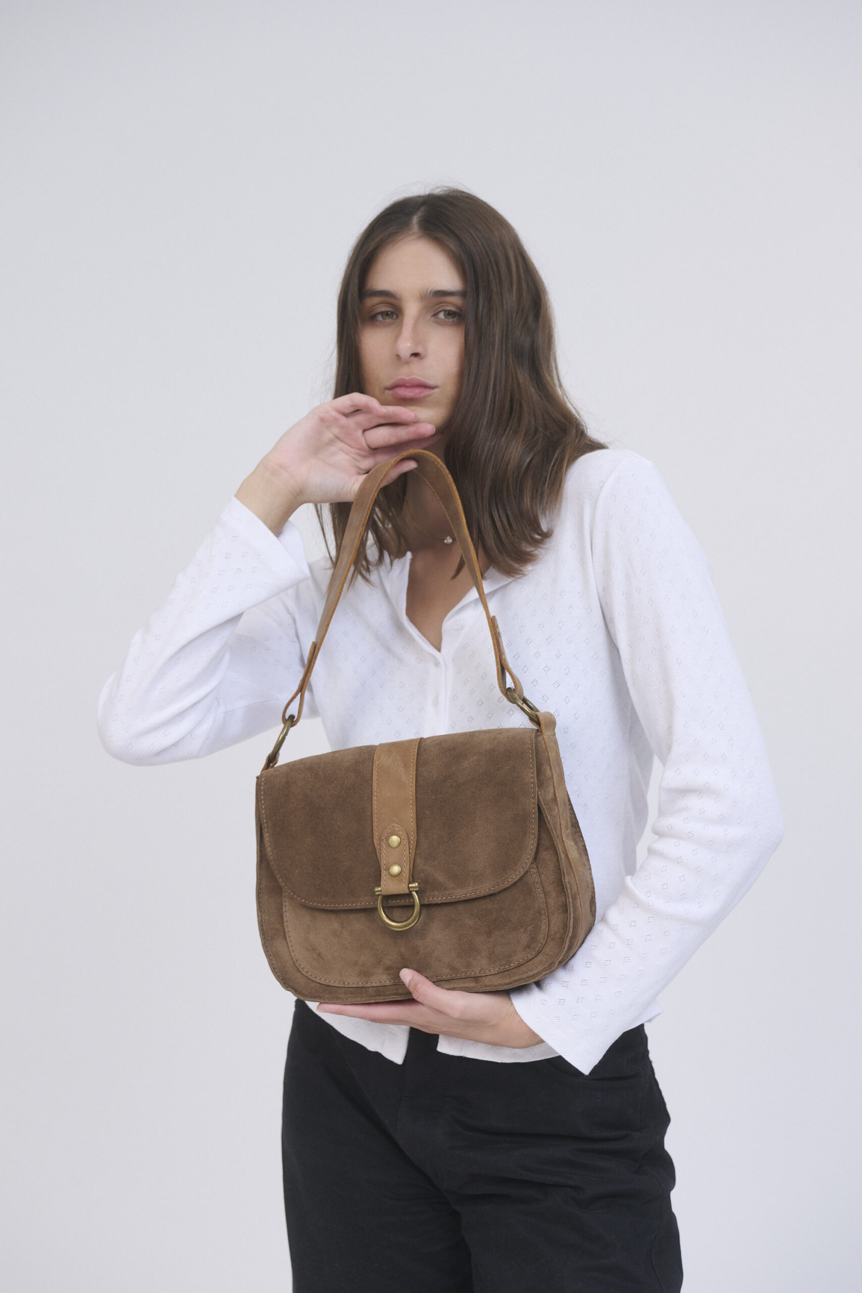 תיק צד מעור- גודל אולטימטיבי, הן לערב והן ליום- יום, רצועה מתכווננת מעור וידית לנשיאה על הכתף.