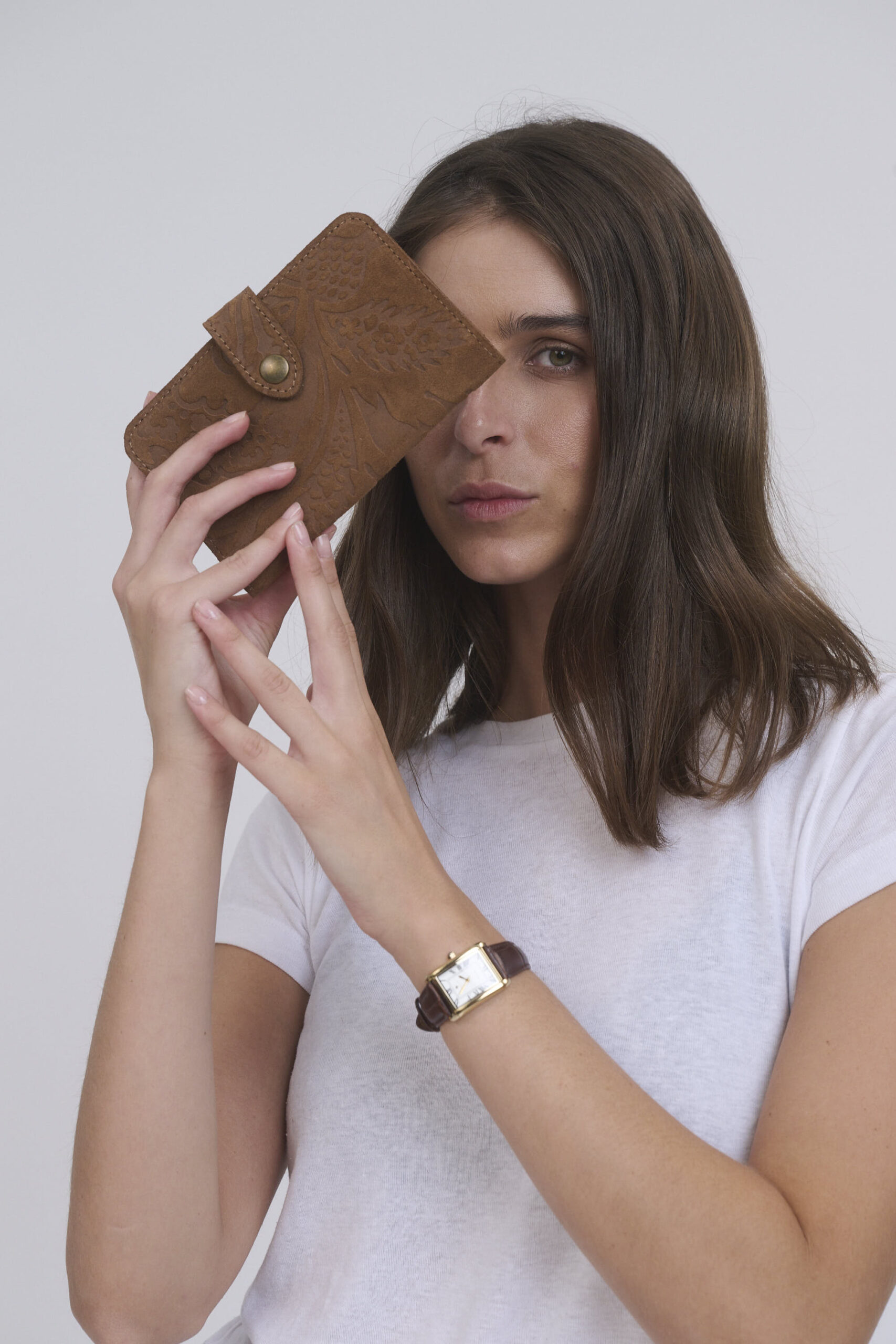 ארנק עור איכותי בייצור מקומי, בעל שמונה תאים לכרטיסים ורוכסן למטבעות.