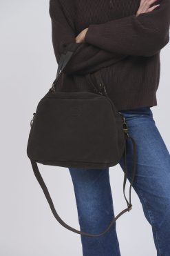 תיק נשיאה מיני צ'ארלי – זמש שוקולד
