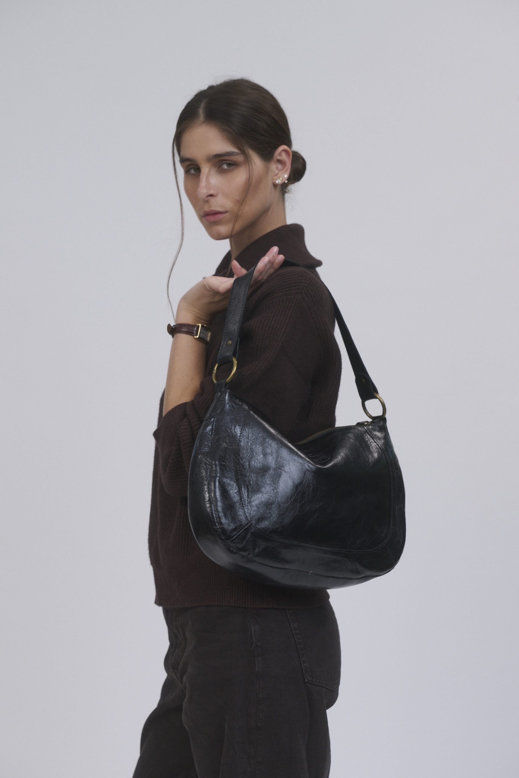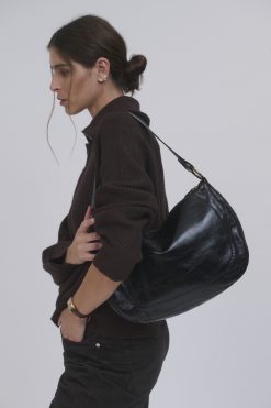 תיק עור צד ונשיאה קאיה- שחור מבריק