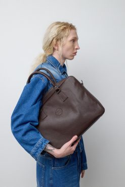 תיק עור גדול מעוצב, המכיל מחשב נייד עד 15 אינצ'.