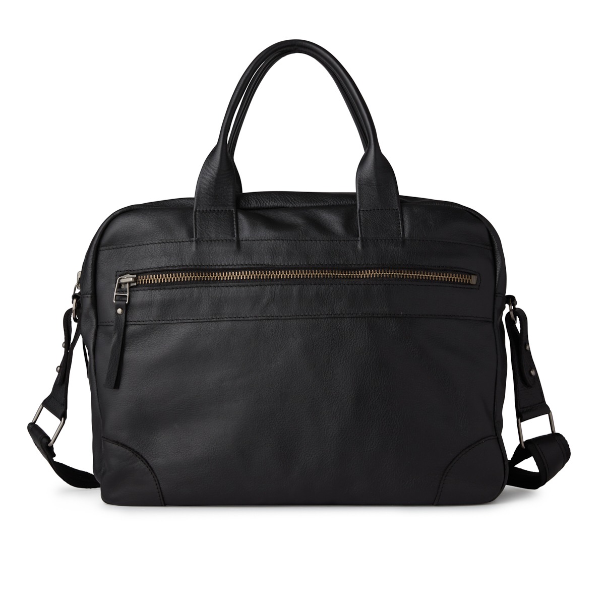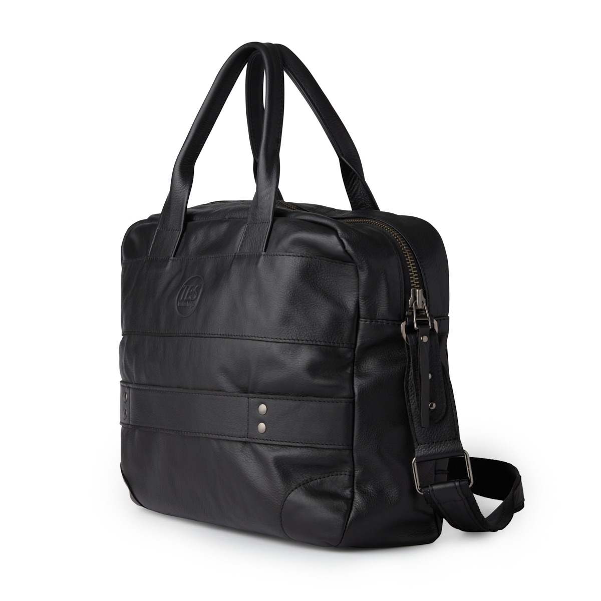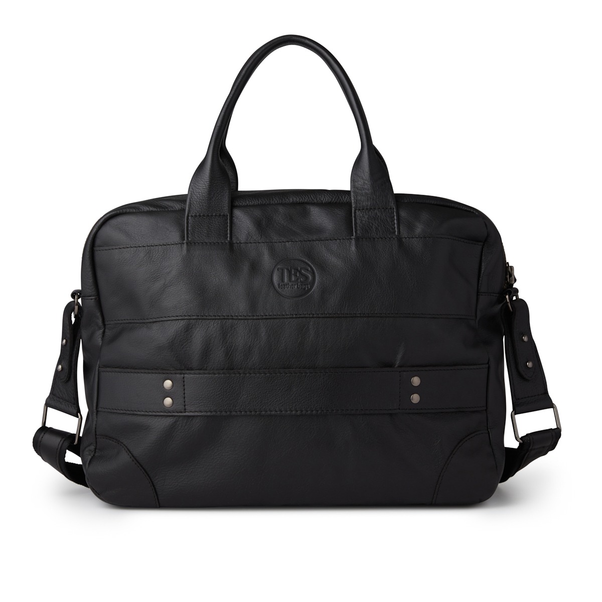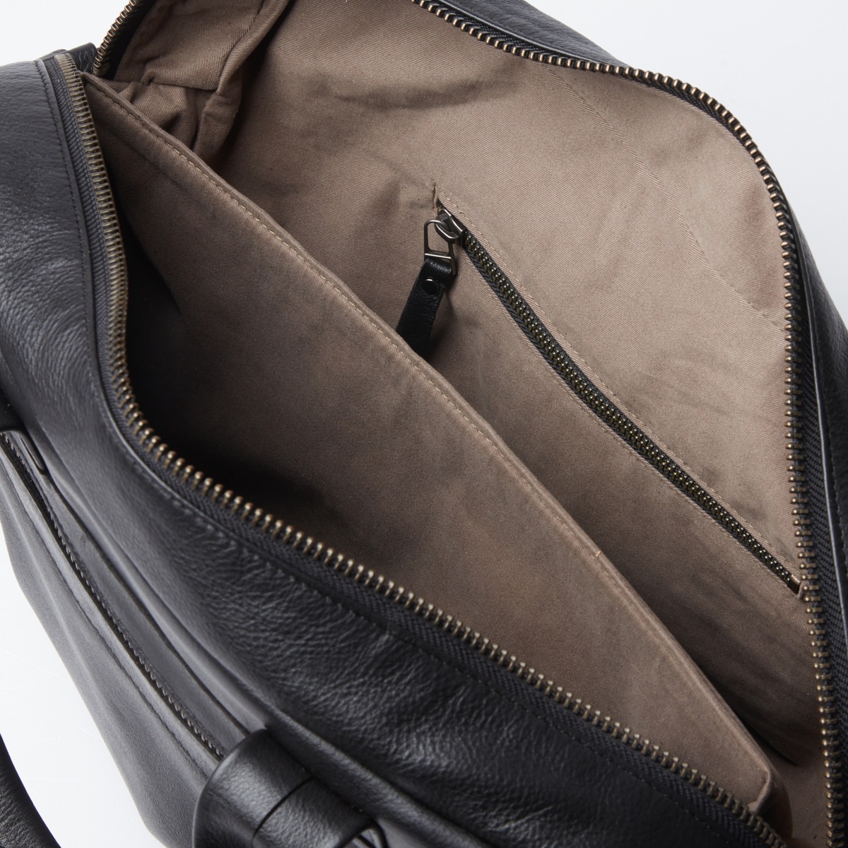 תיק עור גדול מעוצב, המכיל מחשב נייד. חוצץ פנימי לחלוקה.